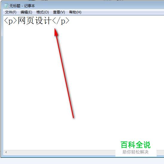 如图,在其中写上<p>网页设计</p>来测试一下,p标签是段落标签,可以被浏览器识别。