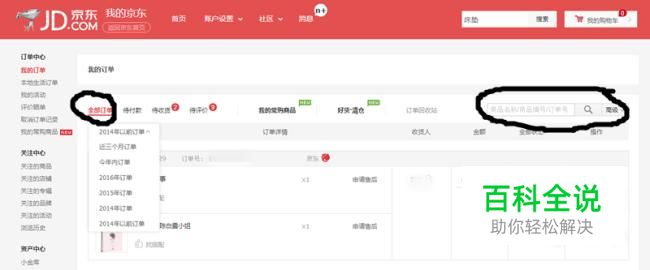 登录成功后即可进入“我的订单”,可以如图选择要删除的订单所属期,或者直接在搜索框内输入商品关键字进行搜索。