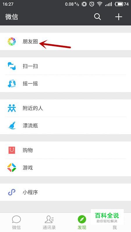 点击“朋友圈”