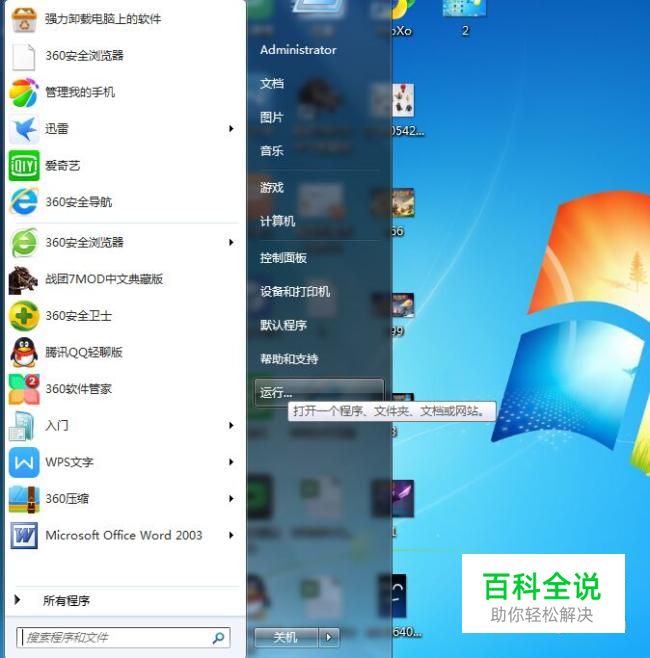 方法三:在电脑全部程序中打开。 此处以WIN7系统为例。点击电脑桌面左下角的“开始”样式图标,打开全部程序,找到“附件”,单击打开附件文件夹。