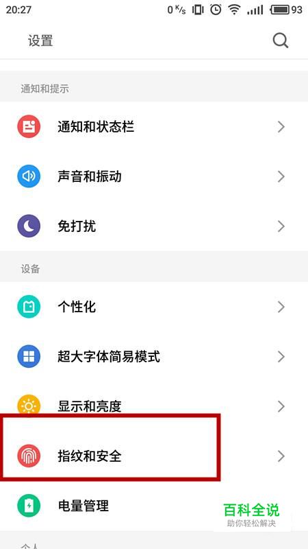 在设置中,选择“指纹和安全”