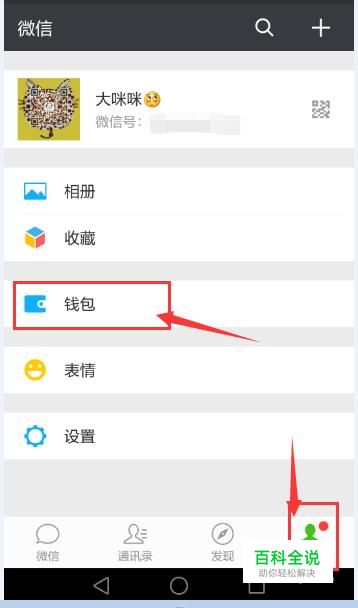 在手机登录微信之后,点击“我”,然后在“我”的界面点击“钱包”。