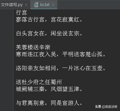 在Python中,文件读写是通过open()函数打开的文件对象完成的。使用with语句操作文件IO是个好习惯。