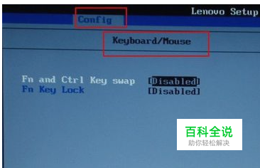 要修改fn键就要先进入bios,然后找到config,选择keyboard&mouse。里面的fn and ctrl key swap 就是设置fn和ctrl键效果的。