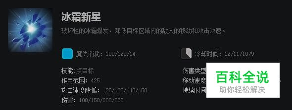 冰霜新星是一个范围攻击技能,对敌方单位造成减速并伤害。