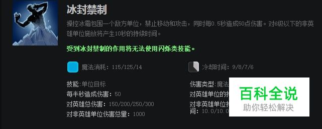 冰封禁制是一个控制技能,能够将敌方单体单位禁锢并造成持续伤害。