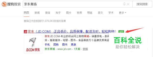 在搜狗搜索中输入“京东商城”,如图所示