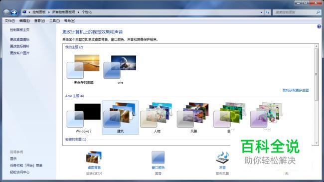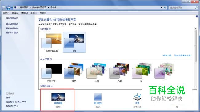 随便选中一个主题,然后选择下面的 桌面背景 。