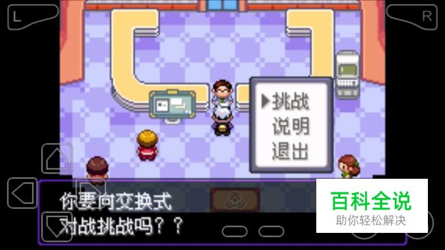交换对战场所位于凯那市西北角,进入以后可以跟中间这个人选择挑战比赛,挑战之前可以看一看比赛规则。