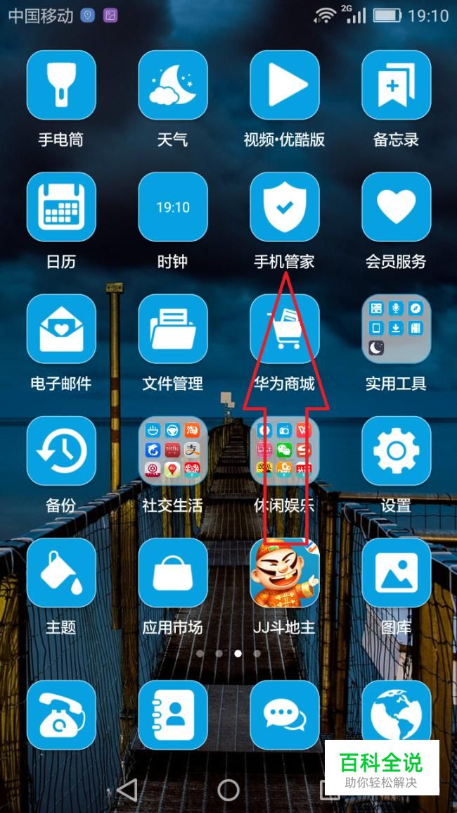 接收不到消息可能是软件的某些权限没有打开。找到手机里的手机管家点击进入。