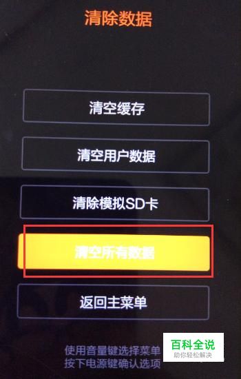 手机进入Recovery模式之后,通过音量键的上下控制选择“简体中文”,电源键为确定键;