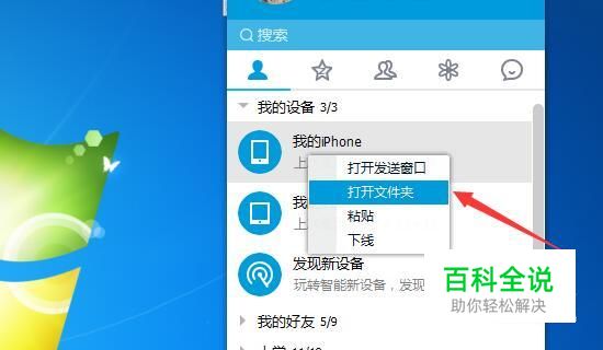 第一种方法,在QQ面板上,找到“我的设备”,鼠标右击我的手机,并点击“打开文件夹”。