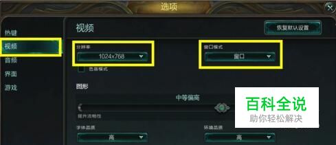 切换至【视频】选项界面,设置你喜欢的分辨率,点击【窗口模式】下拉界面,从中选择【窗口】项,最后点击【确定】即可。