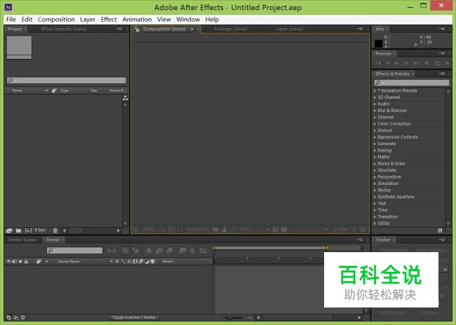 在桌面上双击AE 的快捷图标,打开AE这款软件,进入AE的操作界面,如图所示: