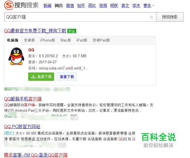 首先在浏览器搜索QQ客户端。并且下载安装好客户端。
