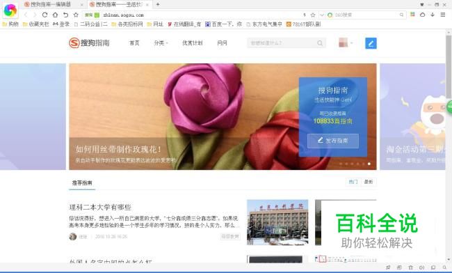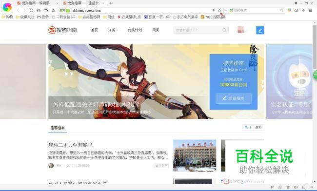 首先打开浏览器,打开你想要收藏的网址(这儿比如说搜狗指南)