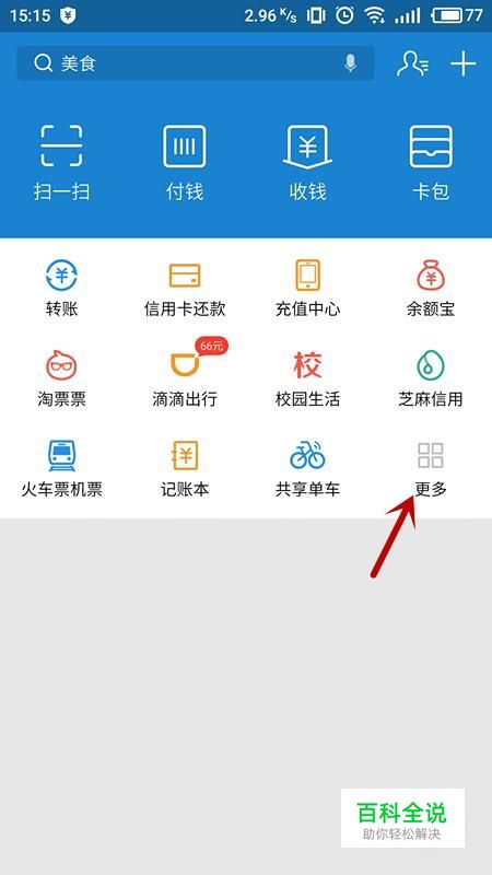 进入支付宝界面后,选择“更多”