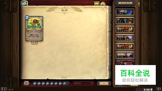 净化到手之后,接下来我们去我们的收藏里就可以在牧师的职业卡牌里找到净化这张卡牌了。