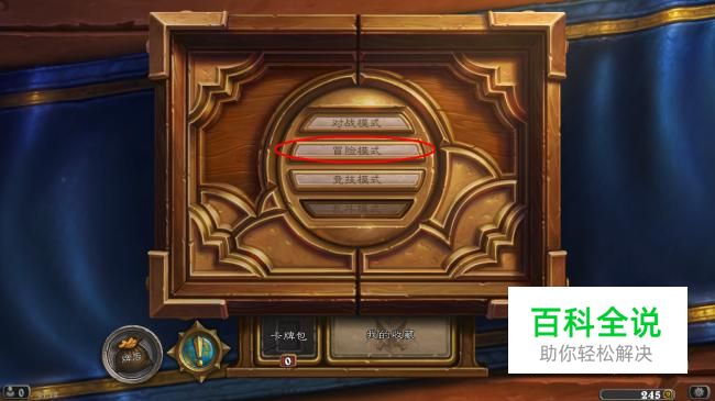 净化不是普通的卡牌,是一张副本卡,如果你没有通过副本,在你的收藏里使用合成卡牌是找不到这样卡的。所以我们进入游戏后,要先选择冒险模式。