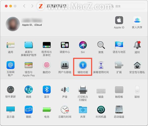 1.在 Mac 上,选取苹果菜单 >“系统偏好设置”,点按“辅助功能”。