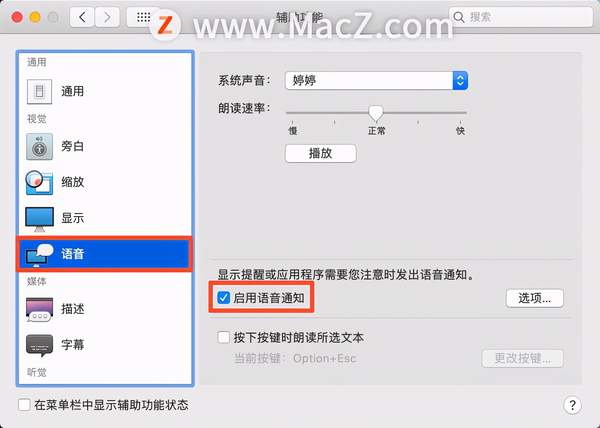 如何在 macOS Catalina 和 Mojave 中启用朗读公告?