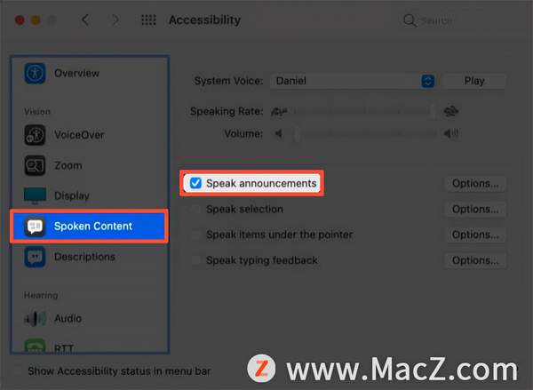 如何在 macOS Monterey 和 Big Sur 中打开朗读公告?