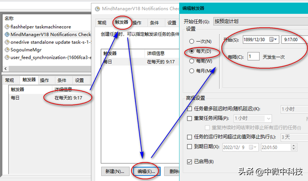 “任务计划程序”:在“触发器”里发现了一个每天9:17的任务