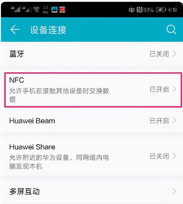 1.需要确定使用的华为手机是否有NFC功能,最简单的查看方法:打开设置--设备连接,来查看是否有NFC选项。