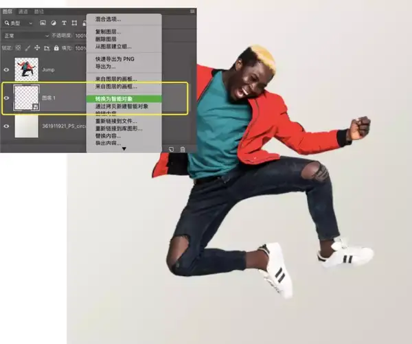 复制“Jump”图层(或按下键盘Cmd C/Ctrl C键复制图层)
