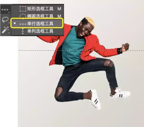 选择“Jump图层” > 使用“单行选框工具”单击图像中的任意一点