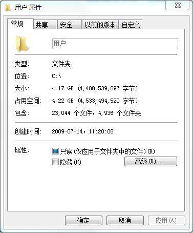 最后一个重灾区就是用户文件夹,它是存放我们所有用户文件的地方。4.22G将近占据不少的系统盘容量。