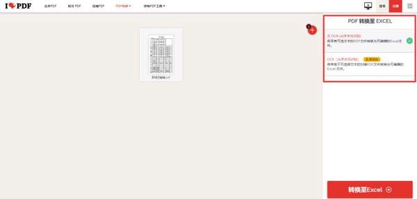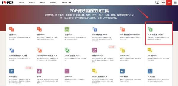在首页就可以找到「PDF转Excel」功能,上传文件即可在线处理