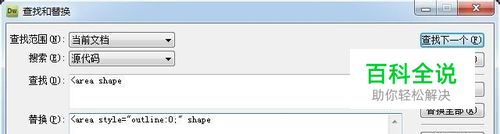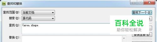 按住快捷键Ctrl+F,弹出 查找和替换框。在查找框中粘贴此代码<area shape