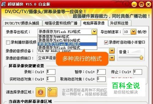 同时录制视频和声音,制作有声有色的视频 接着,我们可以在“录像的音频设备”和“录像的音频端口”处进行设置,录制系统的声音或麦克风的声音都是可以的。
