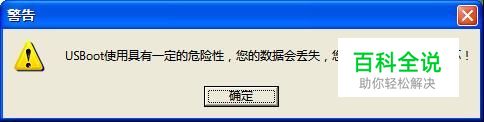 插上你要制作的U盘,打开USBoot 1.7,它会提示“有一定的危险性等”,点确定进入