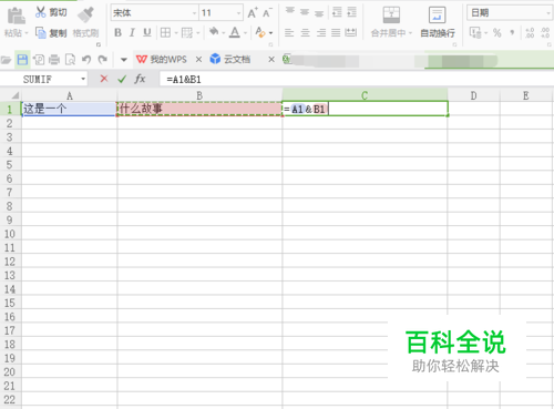 2.输入公式,如下图输入A1&B1(&是shift+7)或者直接点击两个需要合并得表格也可以得