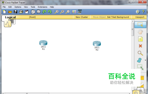 首先打开思科模拟器软件,找出两台2811类的路由器,并且排序好位置,如下图所示: