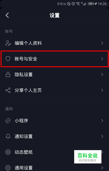 这时,就会打开设置页面。在设置页面中,点击“账号与安全”。