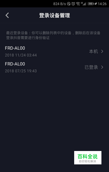 这时,我们就可以看到曾经在上面登录过抖音账号的设备名称了。