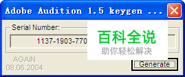 打开 Adobe Audition 1.5 的文件夹,找到 setup,打开安装,在安装的过程中会出现一个编辑文字的对话提示,因为这是原版的程序,需要注册码,所以必须要做这一部的,看到编辑文字,就找到 Keymaker,这是他的注册机,打开后里面会有注册码的生成,复制在黏贴到编辑文字的地方就可以了;需要说明的是里面有三个编辑文字的地方,可以用 Keymaker的一个注册码就行了。 安装setup会出现英语,不会的可以翻译下,那个要输入编码器的图在下面图上。记住安装setup里面会出现一个输入框里面就把这个注册码粘贴