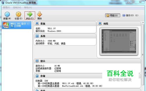 打开Oracle VM VirtualBox虚拟机 ,点击“启动”,打开虚拟机