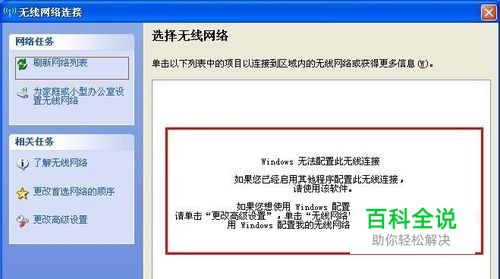 排查三 确认使用windows配置 解决办法:找到 网上邻居,右键选择并点击 属性,找到 无线网络连接,右键选择并点击 属性,找到 无线网络配置,勾选 用Windows配置我的无线网络,点击 确定。如下图所示:
