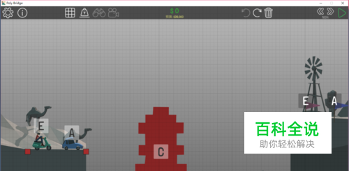 本关限定了桥面为8块,所以无法使用其他的方式铺设桥面,只能使用直线的路面。再就是船只较高要选择合理的地方设置液压装置。通过顺序:A车通过终点--液压装置运行--船只通过--液压装置恢复--E车通过