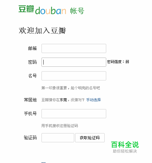 首先我们要登陆豆瓣网站www.douban.com,要做的第一步就是注册一个账户,点击注册账户就会出现下面的页面,然后按要求填好相应信息
