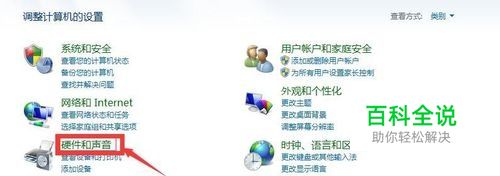 进入下一个页面,选择控制面板中的”硬件和声音“
