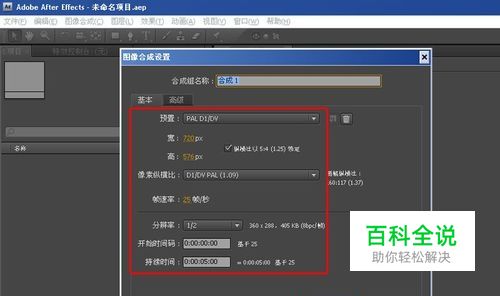 首先,打开AE,按CTRL+N新建合成组,合成设置参数按自己需要设置,按确定,如下图: