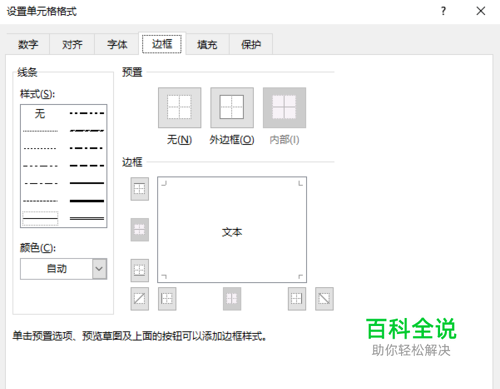 【设定外边框】在“样式”中选择粗实线-在颜色里选黑色-点击“预设”里的外边框。
