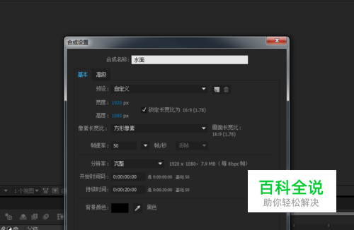 打开AE,新建一个合成,命名为水面。