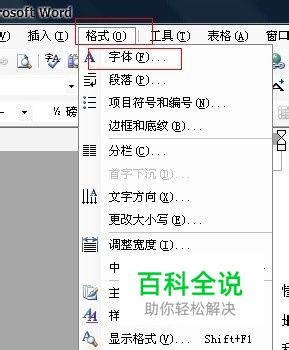 选择【格式→字体】命令,