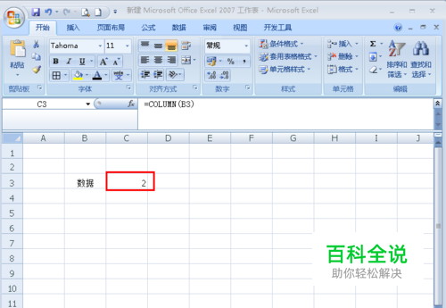 下面以示例介绍column函数的使用方法,返回“数据”所在单元格的列数(如图);